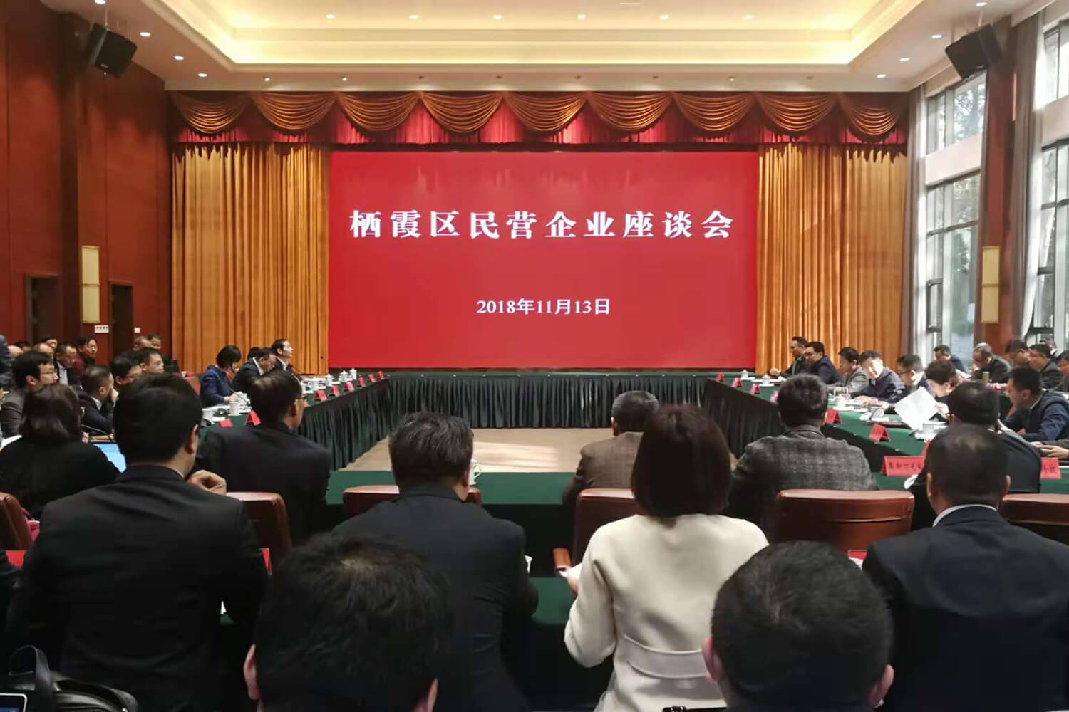 11月13日下午,南京市棲霞區(qū)委區(qū)政府在棲霞區(qū)黨校召開區(qū)內(nèi)民營企業(yè)座談會,區(qū)委書記黎輝、南京經(jīng)濟開發(fā)區(qū)管委會主任沈吉鴻等領(lǐng)導和區(qū)委區(qū)政府有關(guān)部門負責人、以及50家民營企業(yè)和10家銀行代表參加會議。蘇商集團副總經(jīng)理潘麗和江蘇物華國際物流有限公司副總經(jīng)理王洋應(yīng)邀參加了會議。